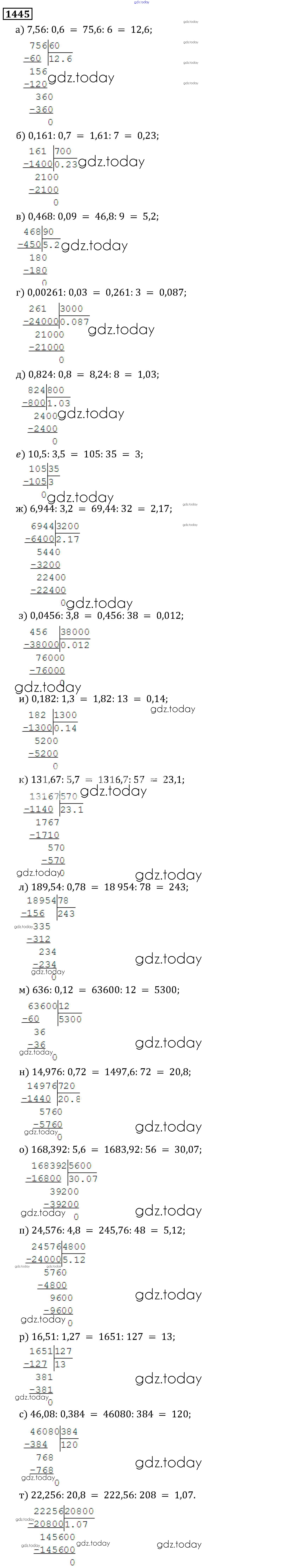 На страницах сайта gdz.today вы найдете учебный и вспомогательный материал, направленный на улучшения знаний школьной программы. ГДЗ - онлайн мир знаний Решение к главе2. Дробные числа (упражнения с 850 по 1849) 1445 Учебнику по Математике для 5 класса Виленкин, Жохов Мнемозина 2013