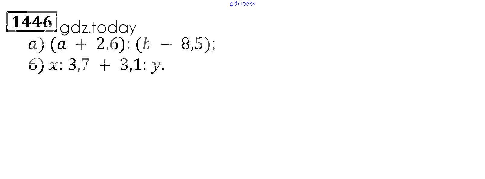 На страницах сайта gdz.today вы найдете учебный и вспомогательный материал, направленный на улучшения знаний школьной программы. ГДЗ - онлайн мир знаний Решение к главе2. Дробные числа (упражнения с 850 по 1849) 1446 Учебнику по Математике для 5 класса Виленкин, Жохов Мнемозина 2013