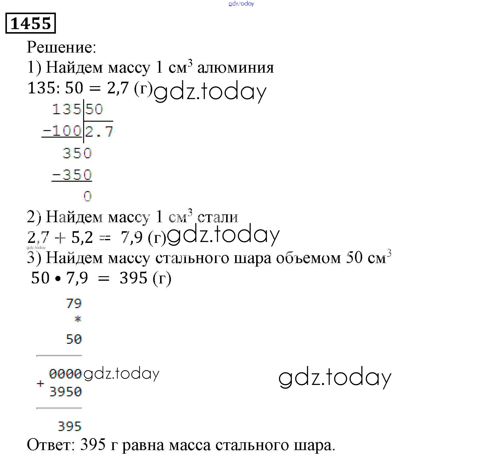 На страницах сайта gdz.today вы найдете учебный и вспомогательный материал, направленный на улучшения знаний школьной программы. ГДЗ - онлайн мир знаний Решение к главе2. Дробные числа (упражнения с 850 по 1849) 1455 Учебнику по Математике для 5 класса Виленкин, Жохов Мнемозина 2013