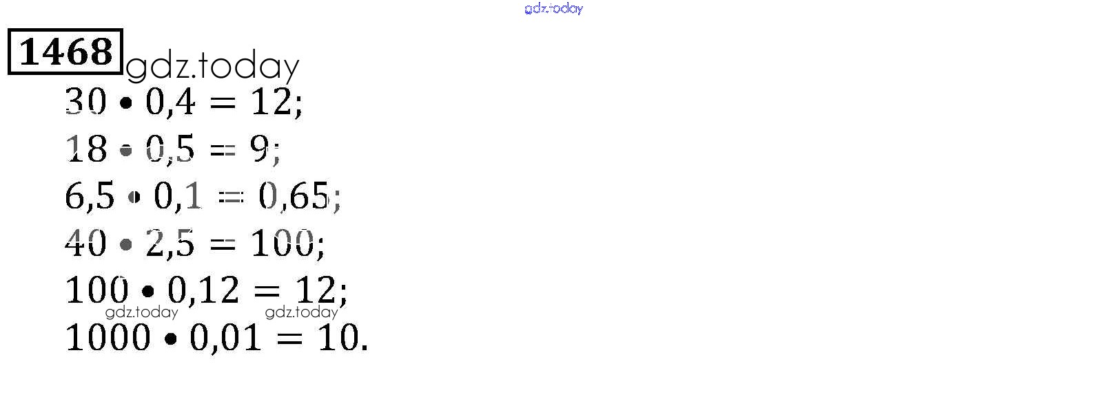 На страницах сайта gdz.today вы найдете учебный и вспомогательный материал, направленный на улучшения знаний школьной программы. ГДЗ - онлайн мир знаний Решение к главе2. Дробные числа (упражнения с 850 по 1849) 1468 Учебнику по Математике для 5 класса Виленкин, Жохов Мнемозина 2013