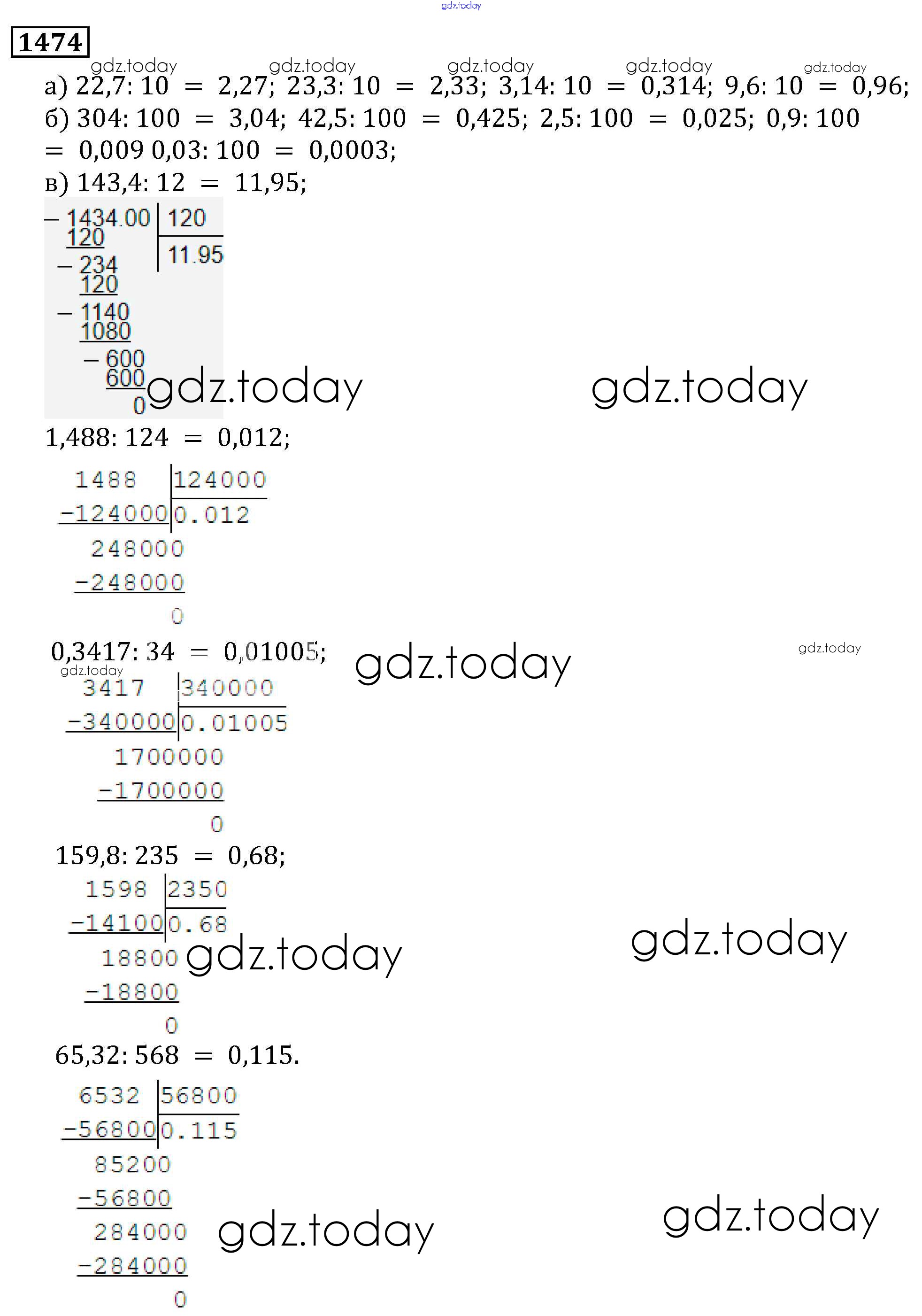 Ответы к Решение к главе2. Дробные числа (упражнения с 850 по 1849) 1474 Учебнику по Математике для 5 класса Виленкин, Жохов Мнемозина 2013