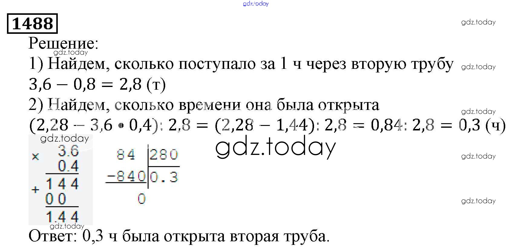 На страницах сайта gdz.today вы найдете учебный и вспомогательный материал, направленный на улучшения знаний школьной программы. ГДЗ - онлайн мир знаний Решение к главе2. Дробные числа (упражнения с 850 по 1849) 1488 Учебнику по Математике для 5 класса Виленкин, Жохов Мнемозина 2013