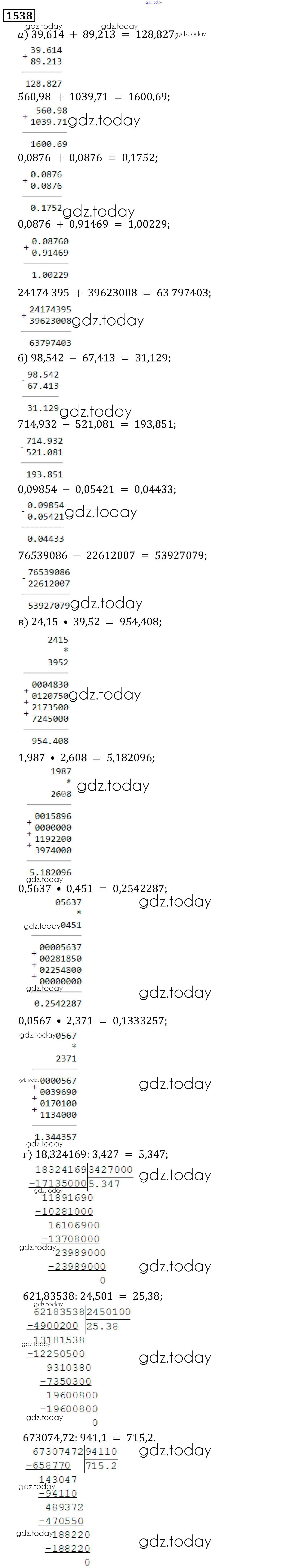 Ответы к Решение к главе2. Дробные числа (упражнения с 850 по 1849) 1538 Учебнику по Математике для 5 класса Виленкин, Жохов Мнемозина 2013