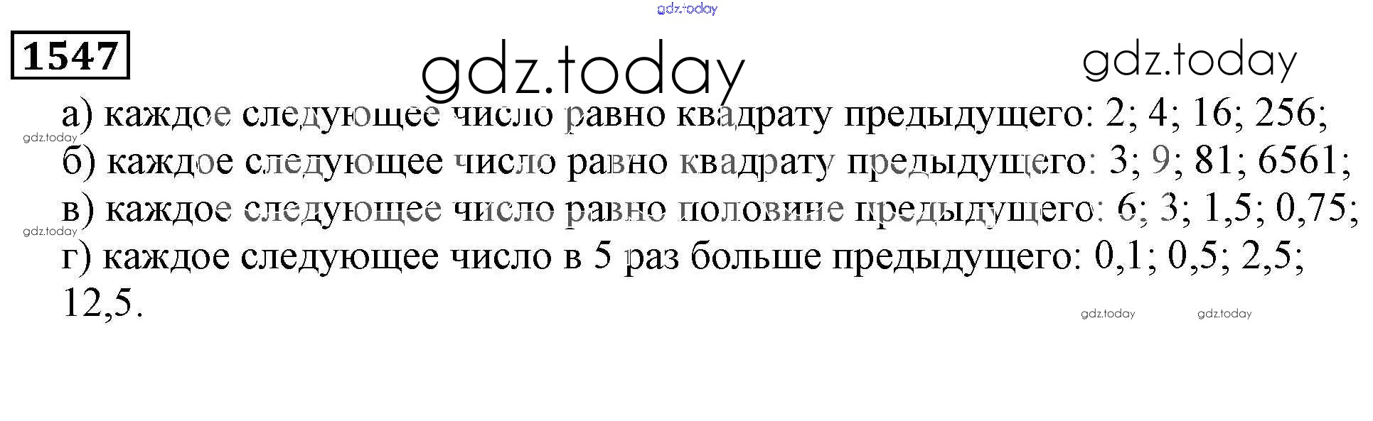 На страницах сайта gdz.today вы найдете учебный и вспомогательный материал, направленный на улучшения знаний школьной программы. ГДЗ - онлайн мир знаний Решение к главе2. Дробные числа (упражнения с 850 по 1849) 1547 Учебнику по Математике для 5 класса Виленкин, Жохов Мнемозина 2013