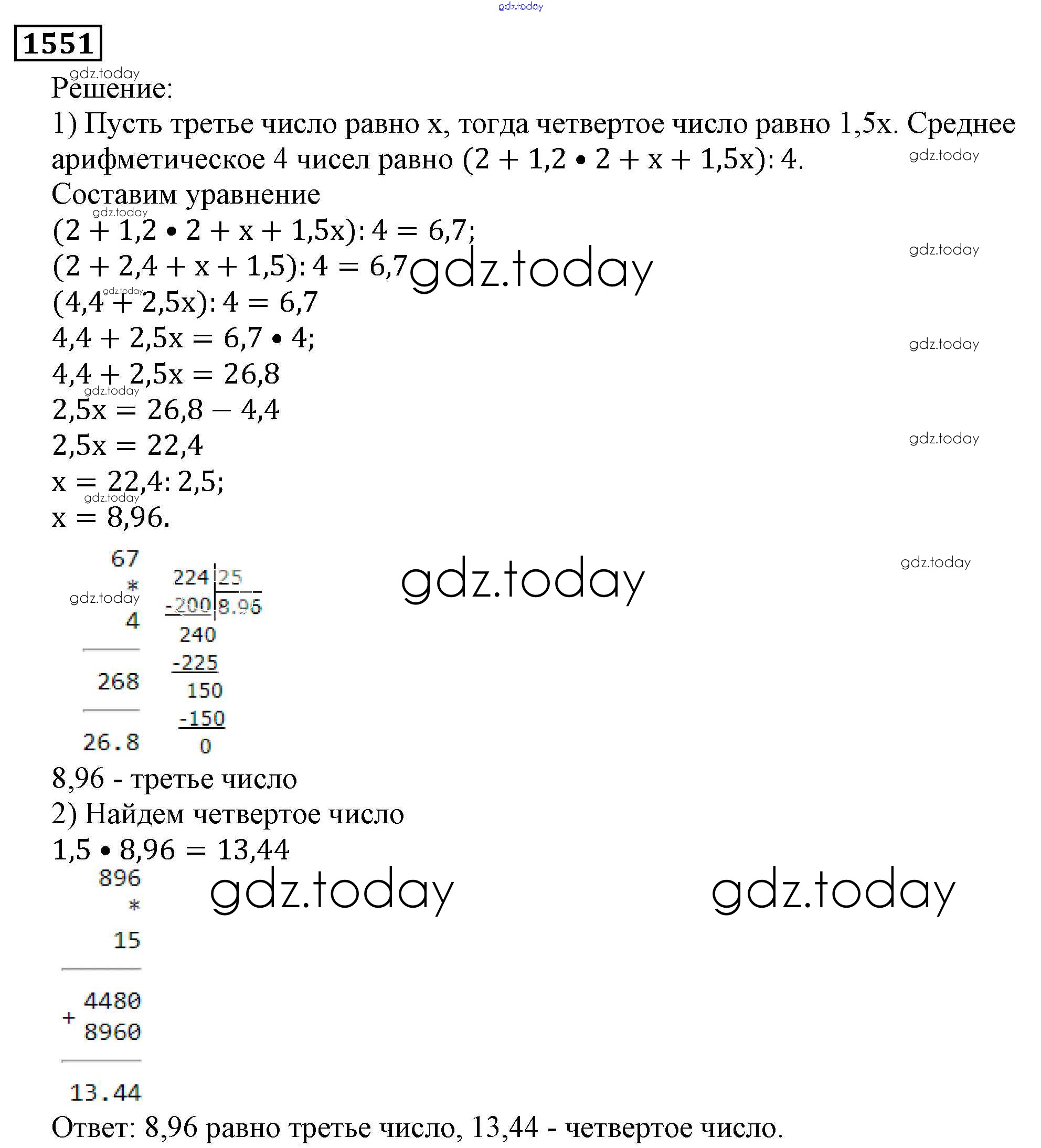 На страницах сайта gdz.today вы найдете учебный и вспомогательный материал, направленный на улучшения знаний школьной программы. ГДЗ - онлайн мир знаний Решение к главе2. Дробные числа (упражнения с 850 по 1849) 1551 Учебнику по Математике для 5 класса Виленкин, Жохов Мнемозина 2013