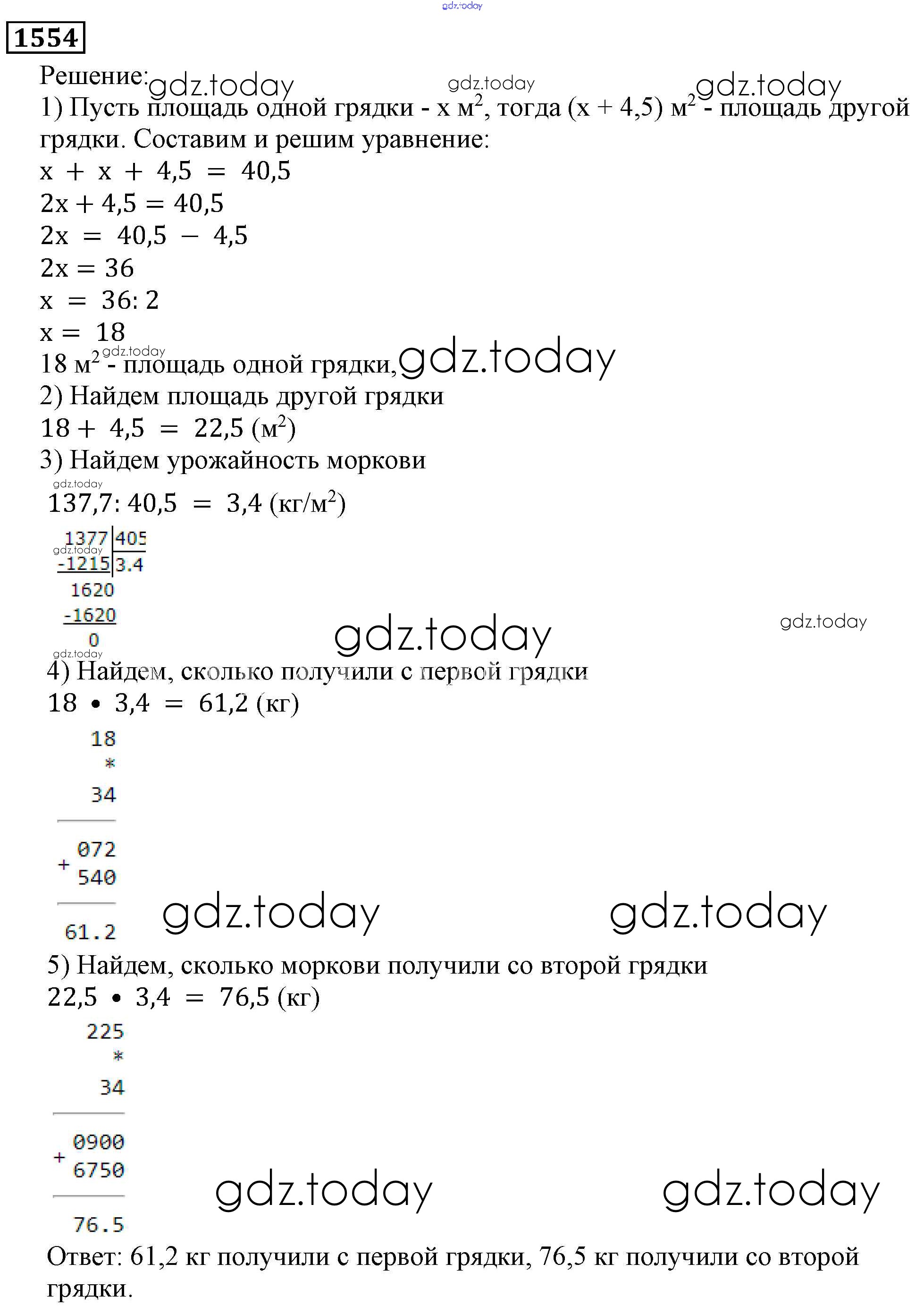Ответы к Решение к главе2. Дробные числа (упражнения с 850 по 1849) 1554 Учебнику по Математике для 5 класса Виленкин, Жохов Мнемозина 2013