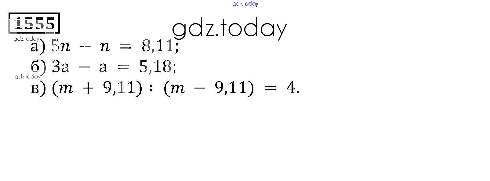 На страницах сайта gdz.today вы найдете учебный и вспомогательный материал, направленный на улучшения знаний школьной программы. ГДЗ - онлайн мир знаний Решение к главе2. Дробные числа (упражнения с 850 по 1849) 1555 Учебнику по Математике для 5 класса Виленкин, Жохов Мнемозина 2013