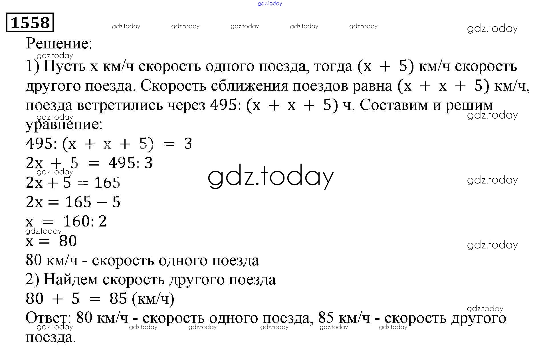 На страницах сайта gdz.today вы найдете учебный и вспомогательный материал, направленный на улучшения знаний школьной программы. ГДЗ - онлайн мир знаний Решение к главе2. Дробные числа (упражнения с 850 по 1849) 1558 Учебнику по Математике для 5 класса Виленкин, Жохов Мнемозина 2013