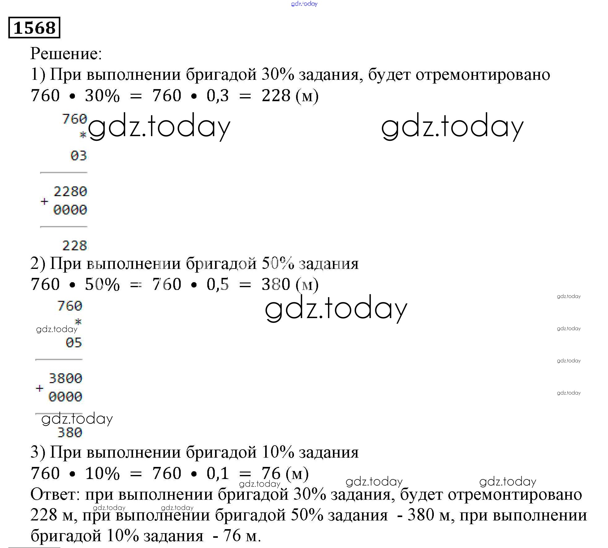 На страницах сайта gdz.today вы найдете учебный и вспомогательный материал, направленный на улучшения знаний школьной программы. ГДЗ - онлайн мир знаний Решение к главе2. Дробные числа (упражнения с 850 по 1849) 1568 Учебнику по Математике для 5 класса Виленкин, Жохов Мнемозина 2013