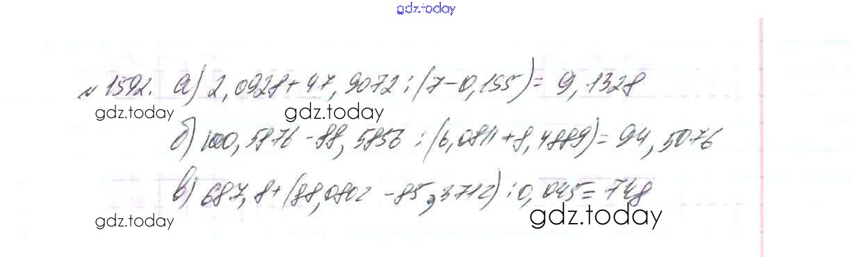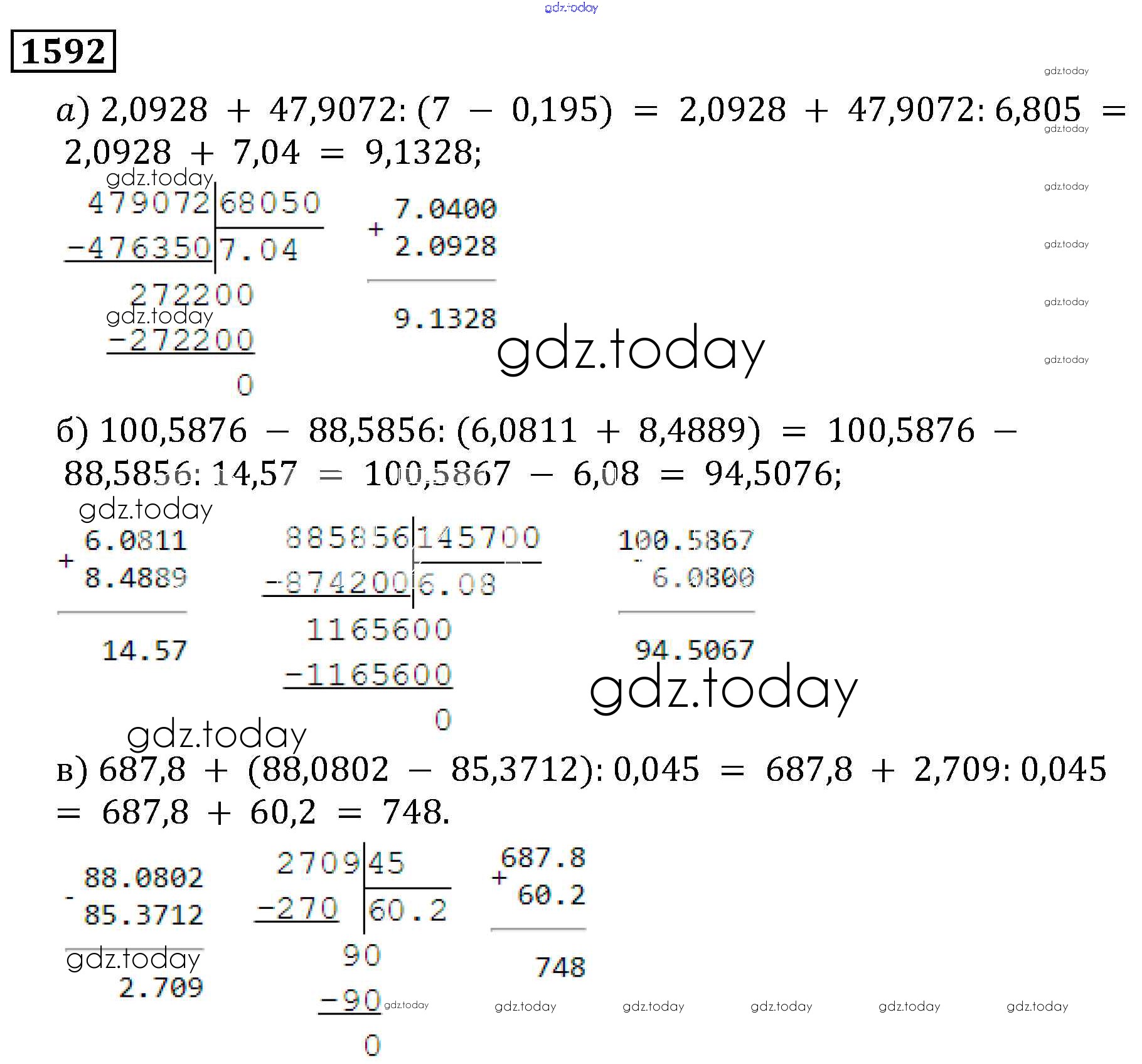 На страницах сайта gdz.today вы найдете учебный и вспомогательный материал, направленный на улучшения знаний школьной программы. ГДЗ - онлайн мир знаний Решение к главе2. Дробные числа (упражнения с 850 по 1849) 1592 Учебнику по Математике для 5 класса Виленкин, Жохов Мнемозина 2013