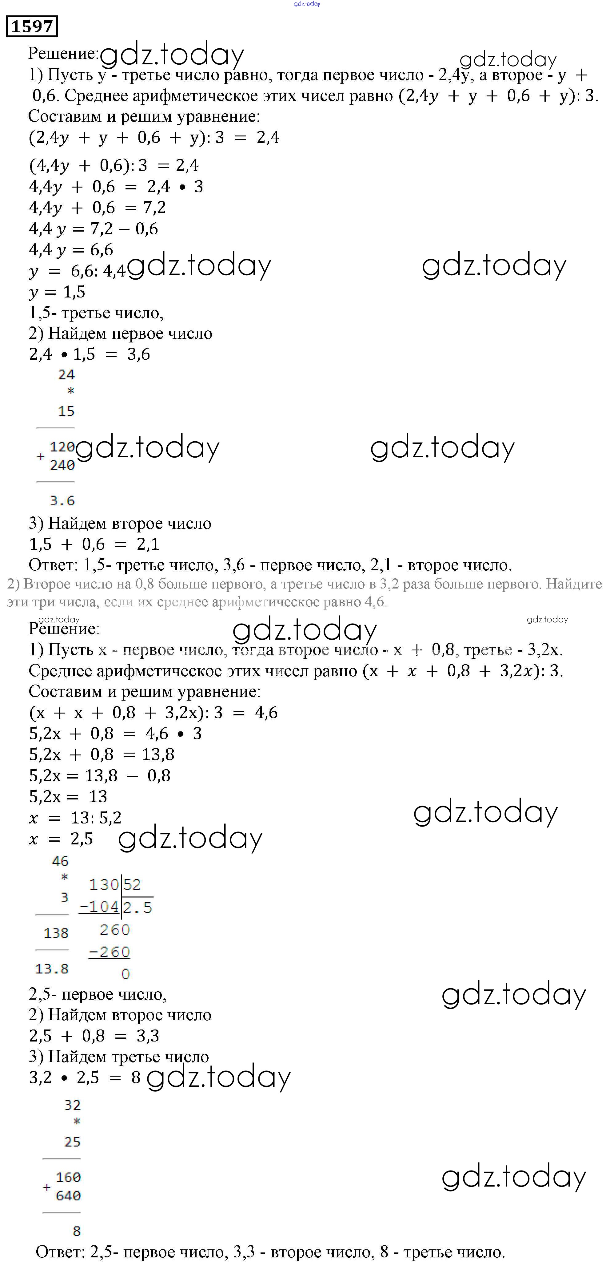 Ответы к Решение к главе2. Дробные числа (упражнения с 850 по 1849) 1597 Учебнику по Математике для 5 класса Виленкин, Жохов Мнемозина 2013