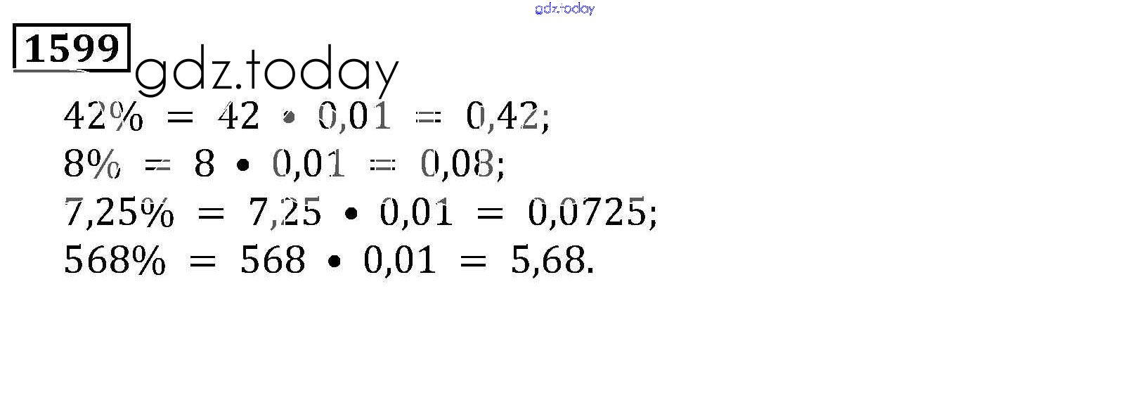 Ответы к Решение к главе2. Дробные числа (упражнения с 850 по 1849) 1599 Учебнику по Математике для 5 класса Виленкин, Жохов Мнемозина 2013