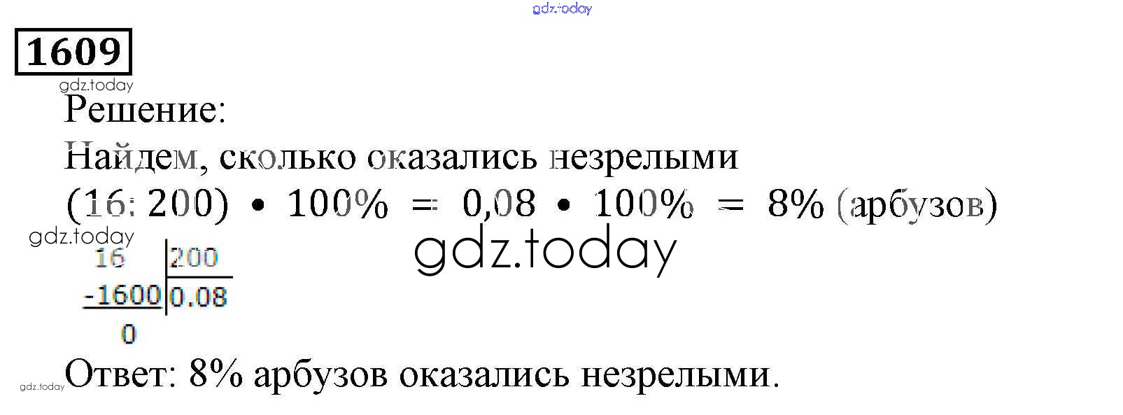На страницах сайта gdz.today вы найдете учебный и вспомогательный материал, направленный на улучшения знаний школьной программы. ГДЗ - онлайн мир знаний Решение к главе2. Дробные числа (упражнения с 850 по 1849) 1609 Учебнику по Математике для 5 класса Виленкин, Жохов Мнемозина 2013