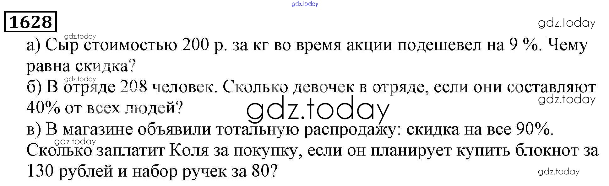 На страницах сайта gdz.today вы найдете учебный и вспомогательный материал, направленный на улучшения знаний школьной программы. ГДЗ - онлайн мир знаний Решение к главе2. Дробные числа (упражнения с 850 по 1849) 1628 Учебнику по Математике для 5 класса Виленкин, Жохов Мнемозина 2013