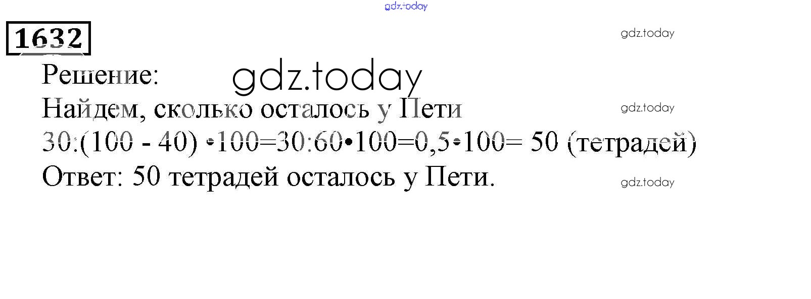 На страницах сайта gdz.today вы найдете учебный и вспомогательный материал, направленный на улучшения знаний школьной программы. ГДЗ - онлайн мир знаний Решение к главе2. Дробные числа (упражнения с 850 по 1849) 1632 Учебнику по Математике для 5 класса Виленкин, Жохов Мнемозина 2013