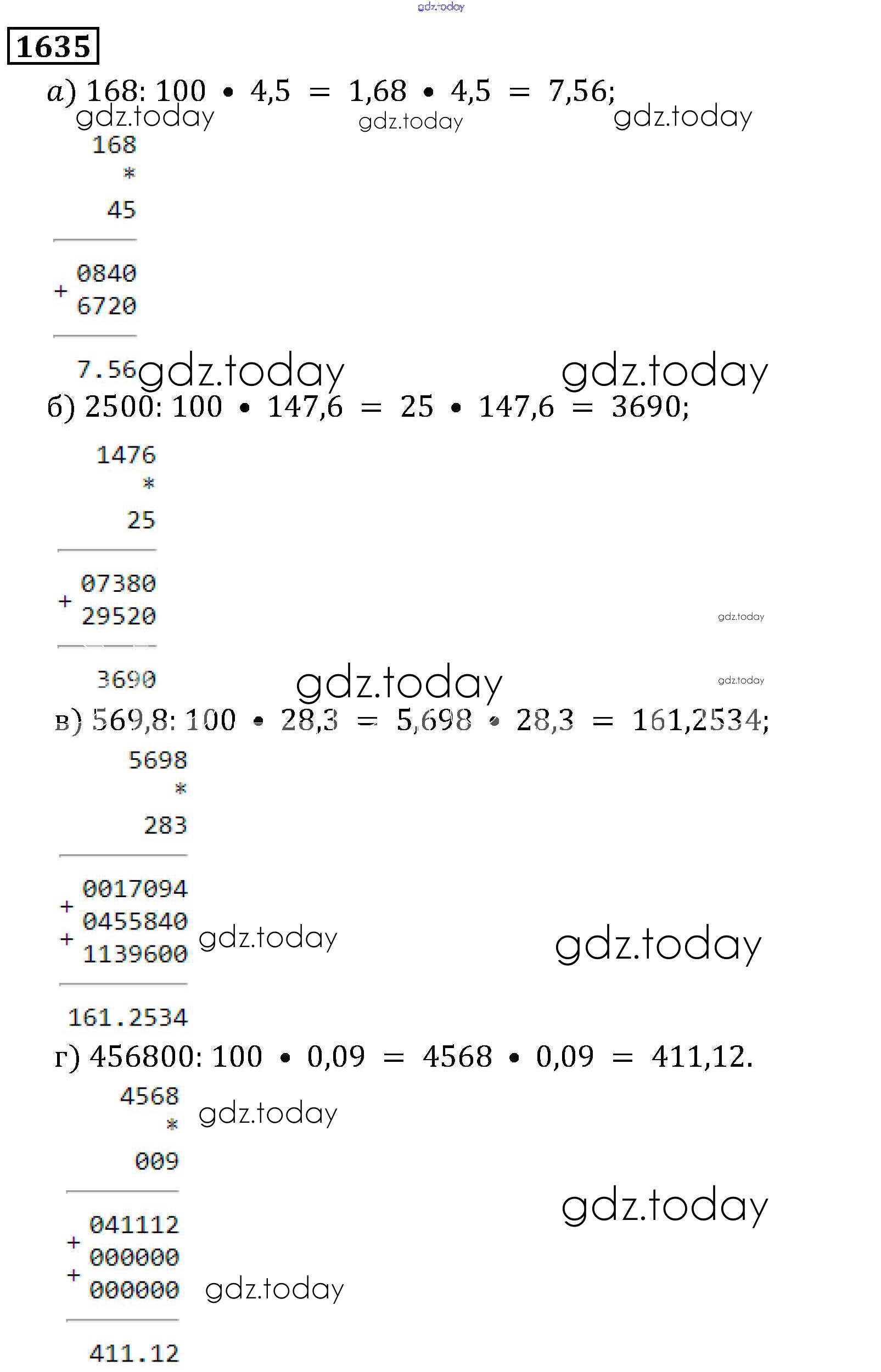 На страницах сайта gdz.today вы найдете учебный и вспомогательный материал, направленный на улучшения знаний школьной программы. ГДЗ - онлайн мир знаний Решение к главе2. Дробные числа (упражнения с 850 по 1849) 1635 Учебнику по Математике для 5 класса Виленкин, Жохов Мнемозина 2013