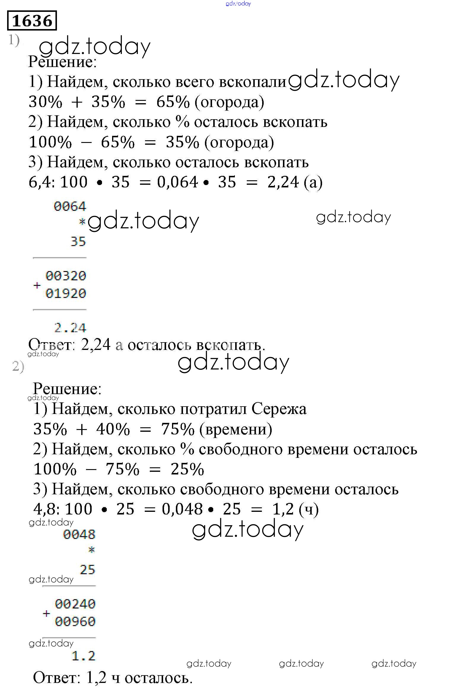 Ответы к Решение к главе2. Дробные числа (упражнения с 850 по 1849) 1636 Учебнику по Математике для 5 класса Виленкин, Жохов Мнемозина 2013