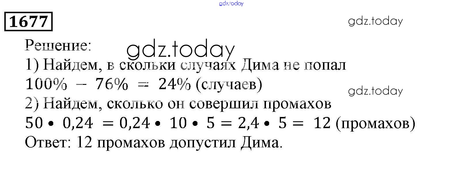 Ответы к Решение к главе2. Дробные числа (упражнения с 850 по 1849) 1677 Учебнику по Математике для 5 класса Виленкин, Жохов Мнемозина 2013