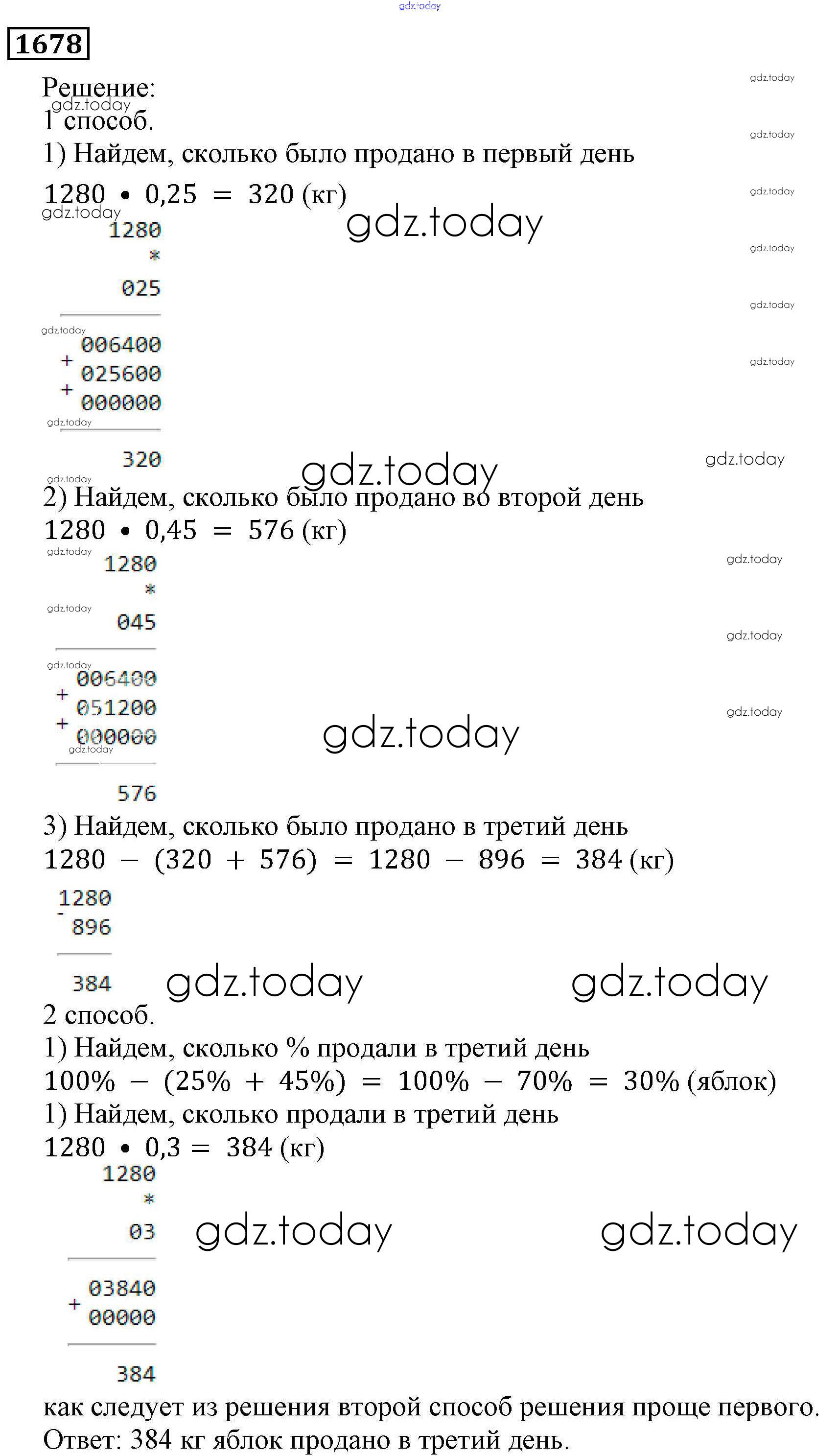На страницах сайта gdz.today вы найдете учебный и вспомогательный материал, направленный на улучшения знаний школьной программы. ГДЗ - онлайн мир знаний Решение к главе2. Дробные числа (упражнения с 850 по 1849) 1678 Учебнику по Математике для 5 класса Виленкин, Жохов Мнемозина 2013