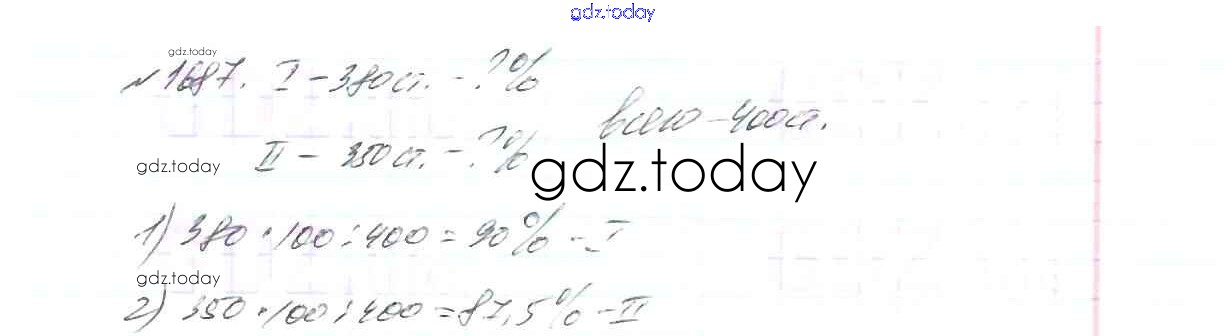 На страницах сайта gdz.today вы найдете учебный и вспомогательный материал, направленный на улучшения знаний школьной программы. ГДЗ - онлайн мир знаний Решение к главе2. Дробные числа (упражнения с 850 по 1849) 1687 Учебнику по Математике для 5 класса Виленкин, Жохов Мнемозина 2013