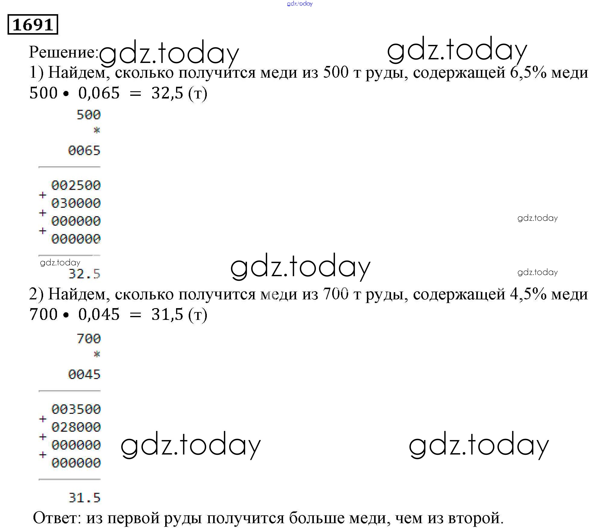 На страницах сайта gdz.today вы найдете учебный и вспомогательный материал, направленный на улучшения знаний школьной программы. ГДЗ - онлайн мир знаний Решение к главе2. Дробные числа (упражнения с 850 по 1849) 1691 Учебнику по Математике для 5 класса Виленкин, Жохов Мнемозина 2013