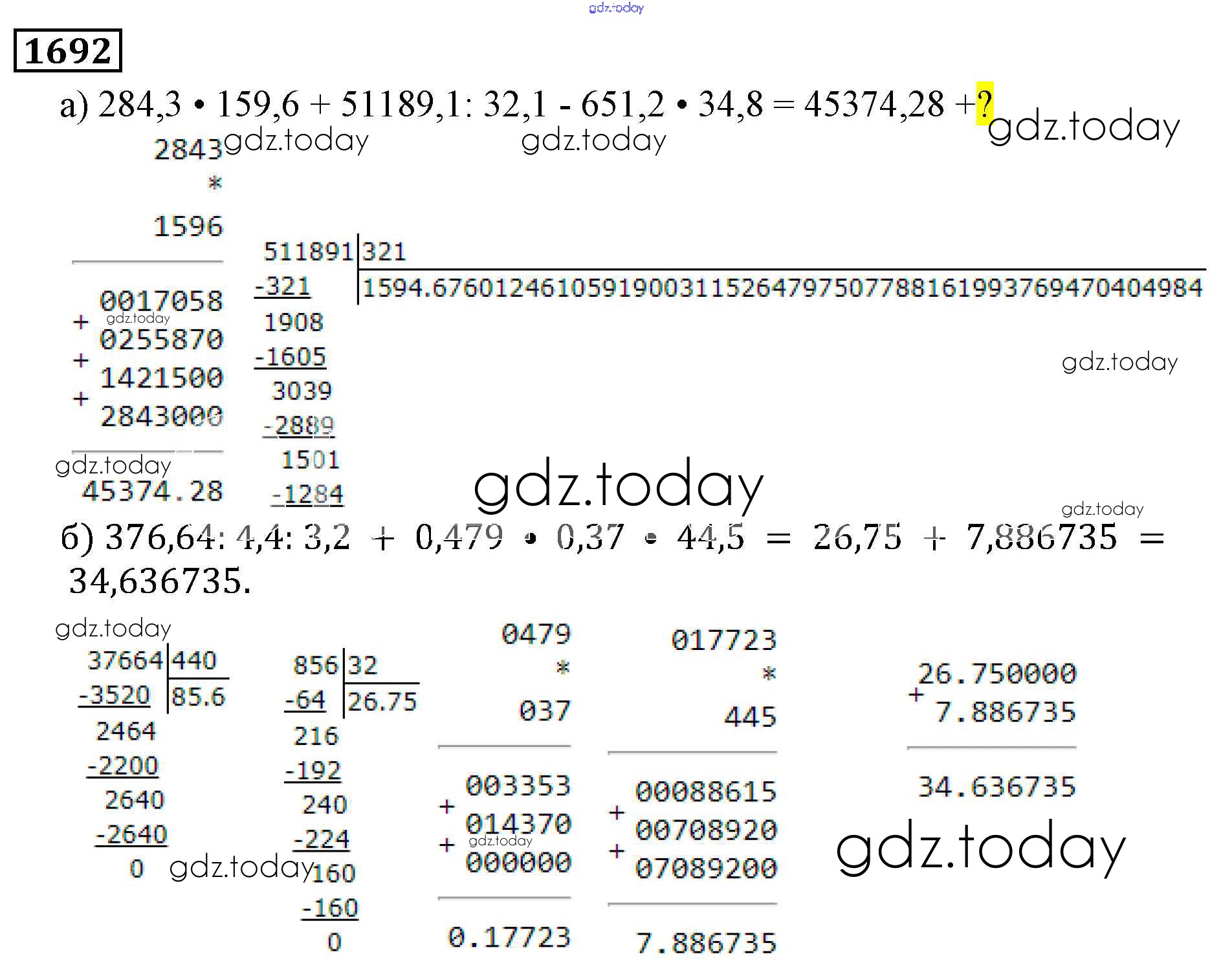 На страницах сайта gdz.today вы найдете учебный и вспомогательный материал, направленный на улучшения знаний школьной программы. ГДЗ - онлайн мир знаний Решение к главе2. Дробные числа (упражнения с 850 по 1849) 1692 Учебнику по Математике для 5 класса Виленкин, Жохов Мнемозина 2013