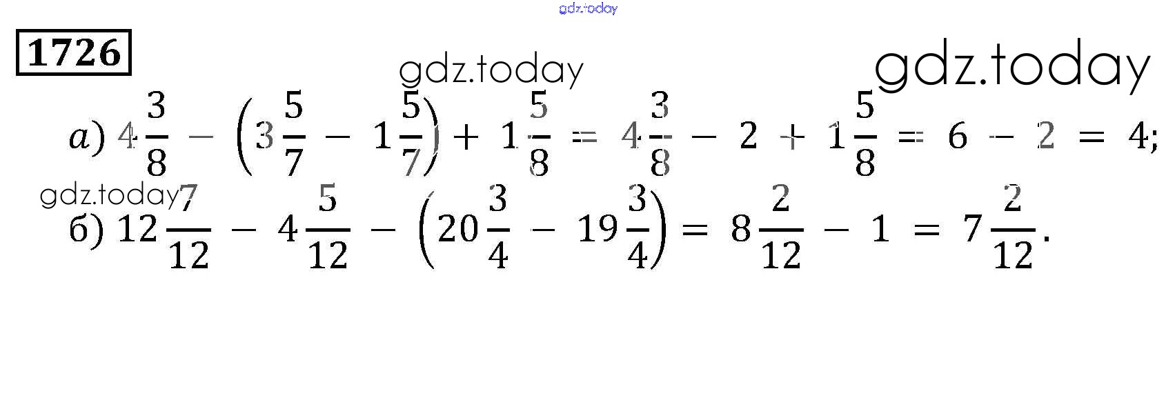 Ответы к Решение к главе2. Дробные числа (упражнения с 850 по 1849) 1726 Учебнику по Математике для 5 класса Виленкин, Жохов Мнемозина 2013