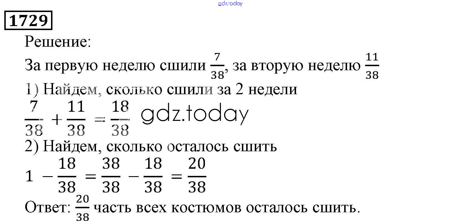 Ответы к Решение к главе2. Дробные числа (упражнения с 850 по 1849) 1729 Учебнику по Математике для 5 класса Виленкин, Жохов Мнемозина 2013