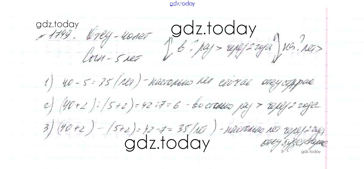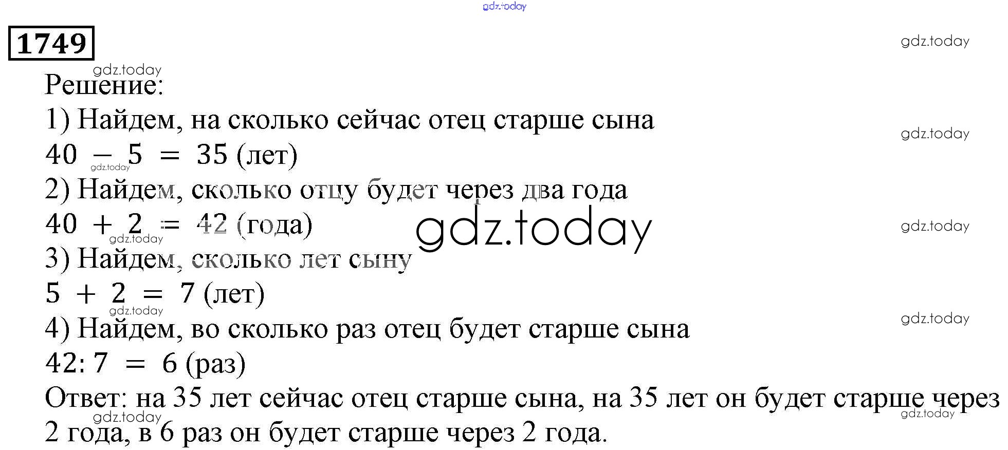 На страницах сайта gdz.today вы найдете учебный и вспомогательный материал, направленный на улучшения знаний школьной программы. ГДЗ - онлайн мир знаний Решение к главе2. Дробные числа (упражнения с 850 по 1849) 1749 Учебнику по Математике для 5 класса Виленкин, Жохов Мнемозина 2013