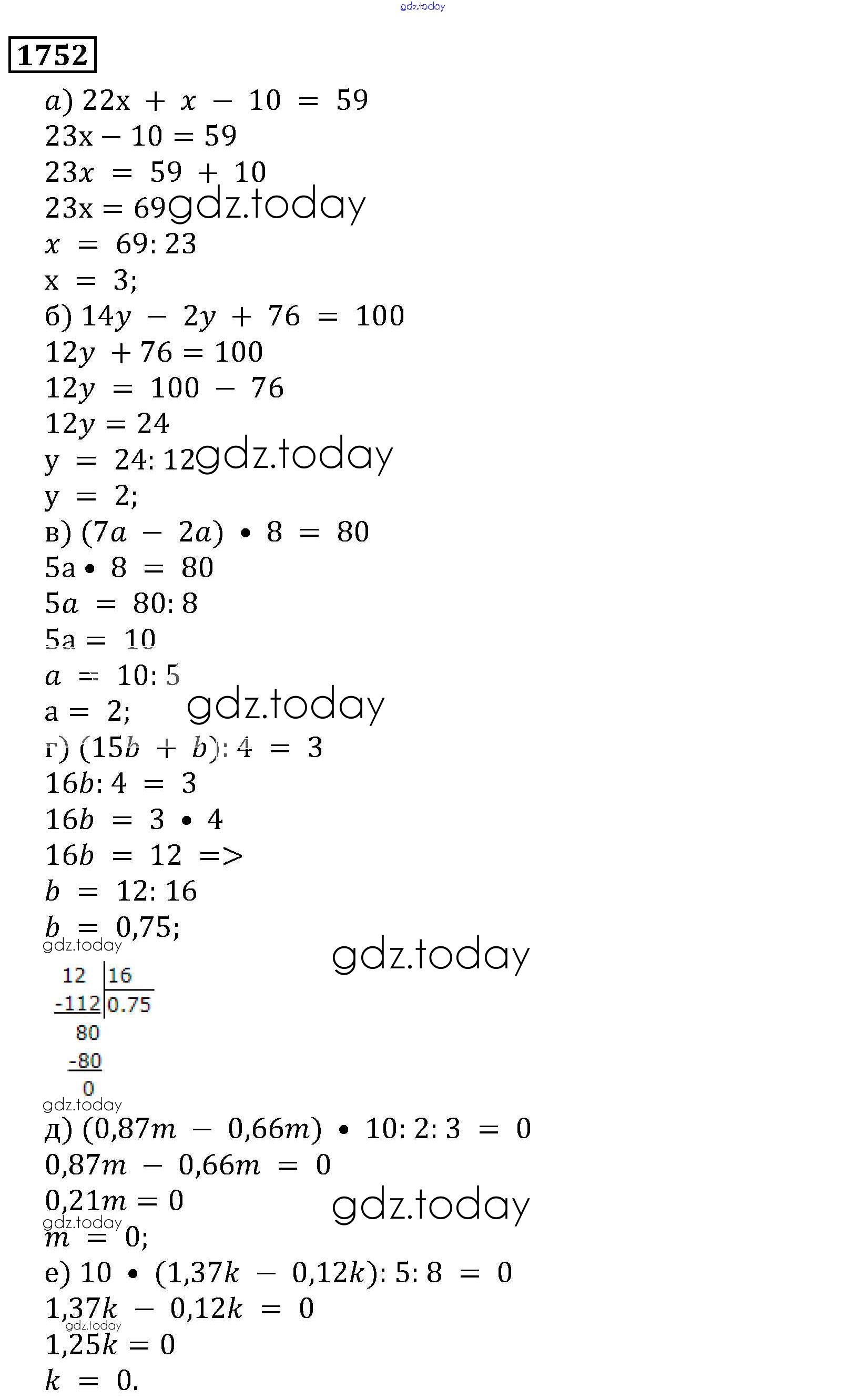 На страницах сайта gdz.today вы найдете учебный и вспомогательный материал, направленный на улучшения знаний школьной программы. ГДЗ - онлайн мир знаний Решение к главе2. Дробные числа (упражнения с 850 по 1849) 1752 Учебнику по Математике для 5 класса Виленкин, Жохов Мнемозина 2013