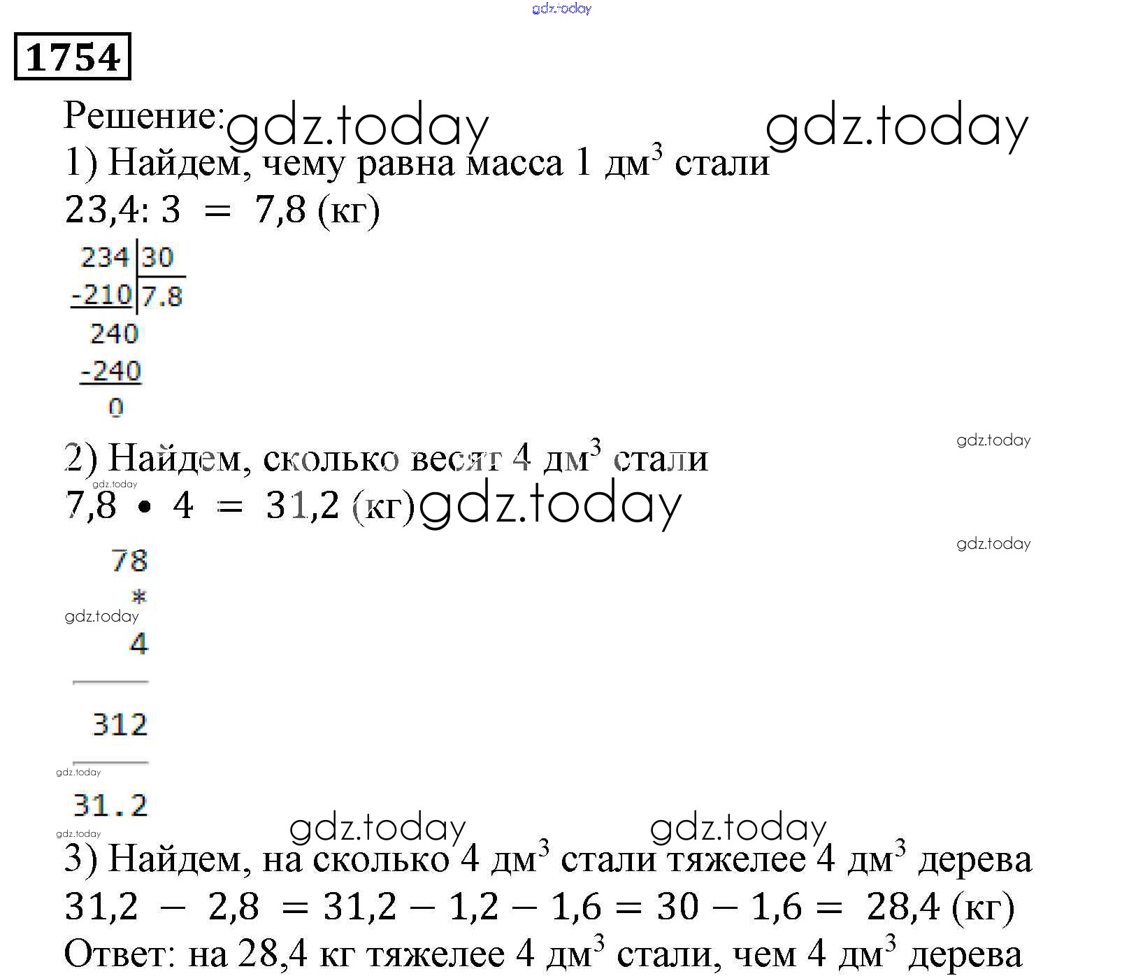 На страницах сайта gdz.today вы найдете учебный и вспомогательный материал, направленный на улучшения знаний школьной программы. ГДЗ - онлайн мир знаний Решение к главе2. Дробные числа (упражнения с 850 по 1849) 1754 Учебнику по Математике для 5 класса Виленкин, Жохов Мнемозина 2013