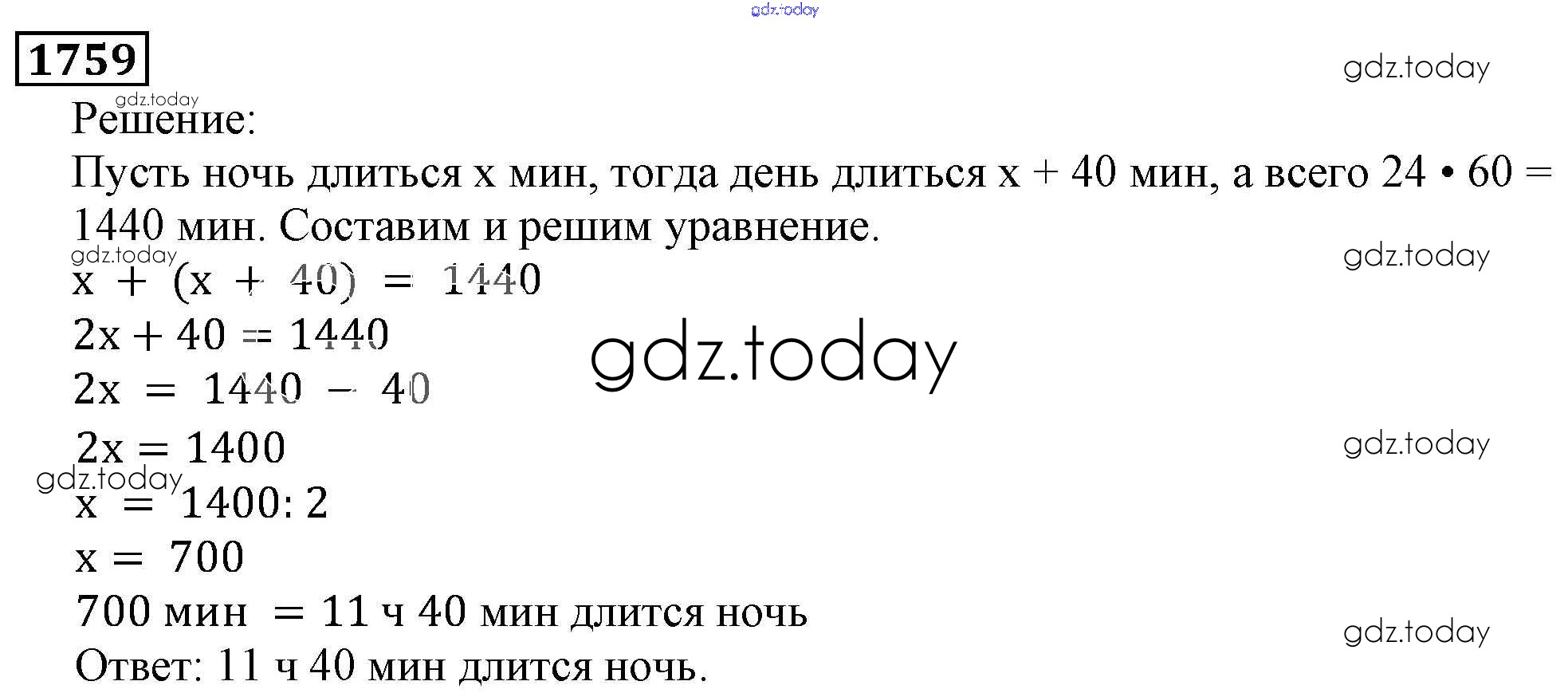 На страницах сайта gdz.today вы найдете учебный и вспомогательный материал, направленный на улучшения знаний школьной программы. ГДЗ - онлайн мир знаний Решение к главе2. Дробные числа (упражнения с 850 по 1849) 1759 Учебнику по Математике для 5 класса Виленкин, Жохов Мнемозина 2013