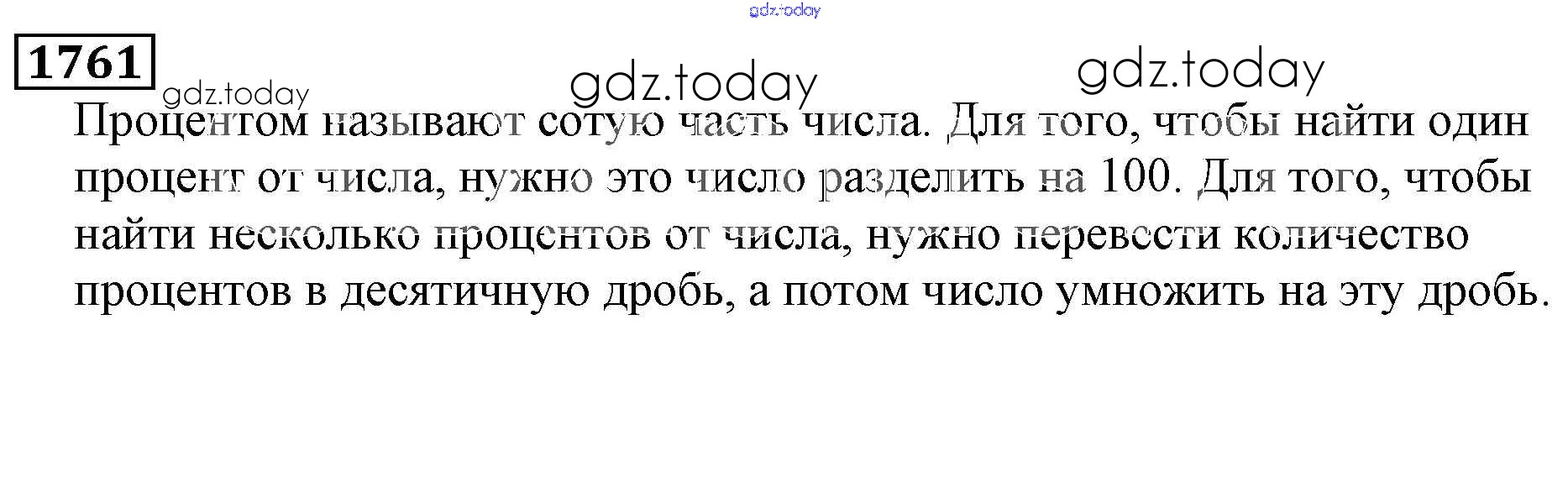 На страницах сайта gdz.today вы найдете учебный и вспомогательный материал, направленный на улучшения знаний школьной программы. ГДЗ - онлайн мир знаний Решение к главе2. Дробные числа (упражнения с 850 по 1849) 1761 Учебнику по Математике для 5 класса Виленкин, Жохов Мнемозина 2013