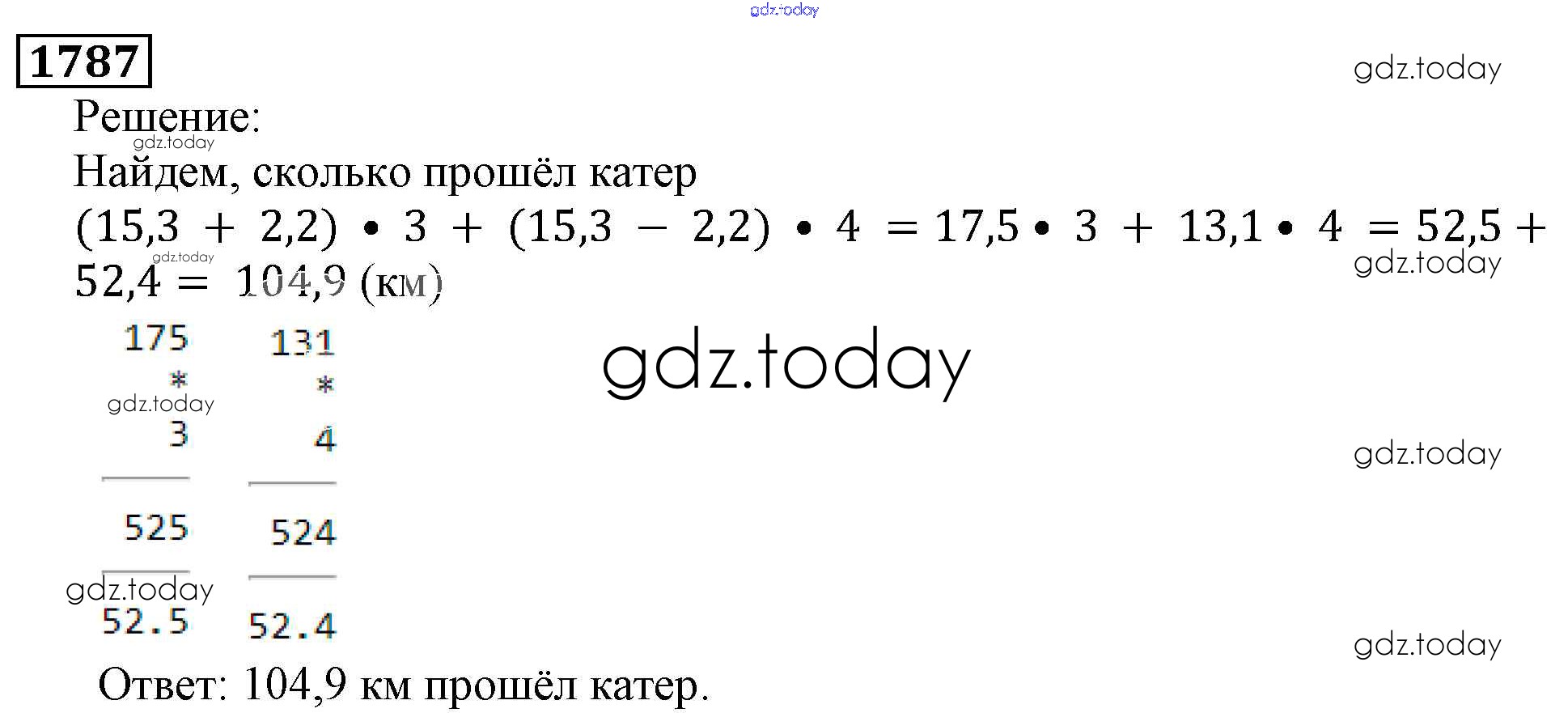 На страницах сайта gdz.today вы найдете учебный и вспомогательный материал, направленный на улучшения знаний школьной программы. ГДЗ - онлайн мир знаний Решение к главе2. Дробные числа (упражнения с 850 по 1849) 1787 Учебнику по Математике для 5 класса Виленкин, Жохов Мнемозина 2013