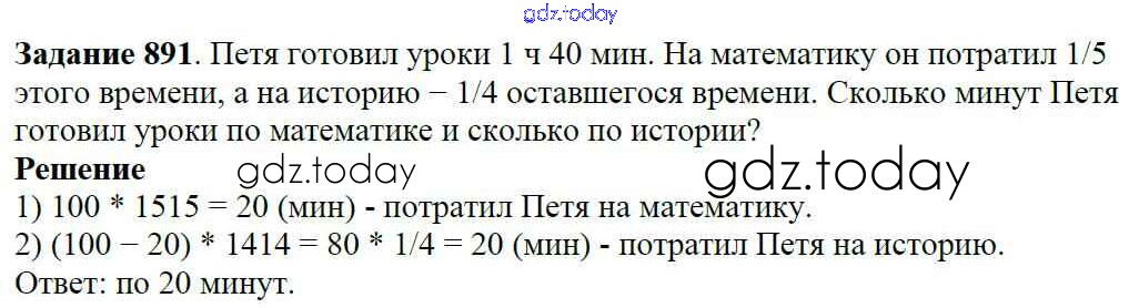 На страницах сайта gdz.today вы найдете учебный и вспомогательный материал, направленный на улучшения знаний школьной программы. ГДЗ - онлайн мир знаний Решение к главе2. Дробные числа (упражнения с 850 по 1849) 891 Учебнику по Математике для 5 класса Виленкин, Жохов Мнемозина 2013