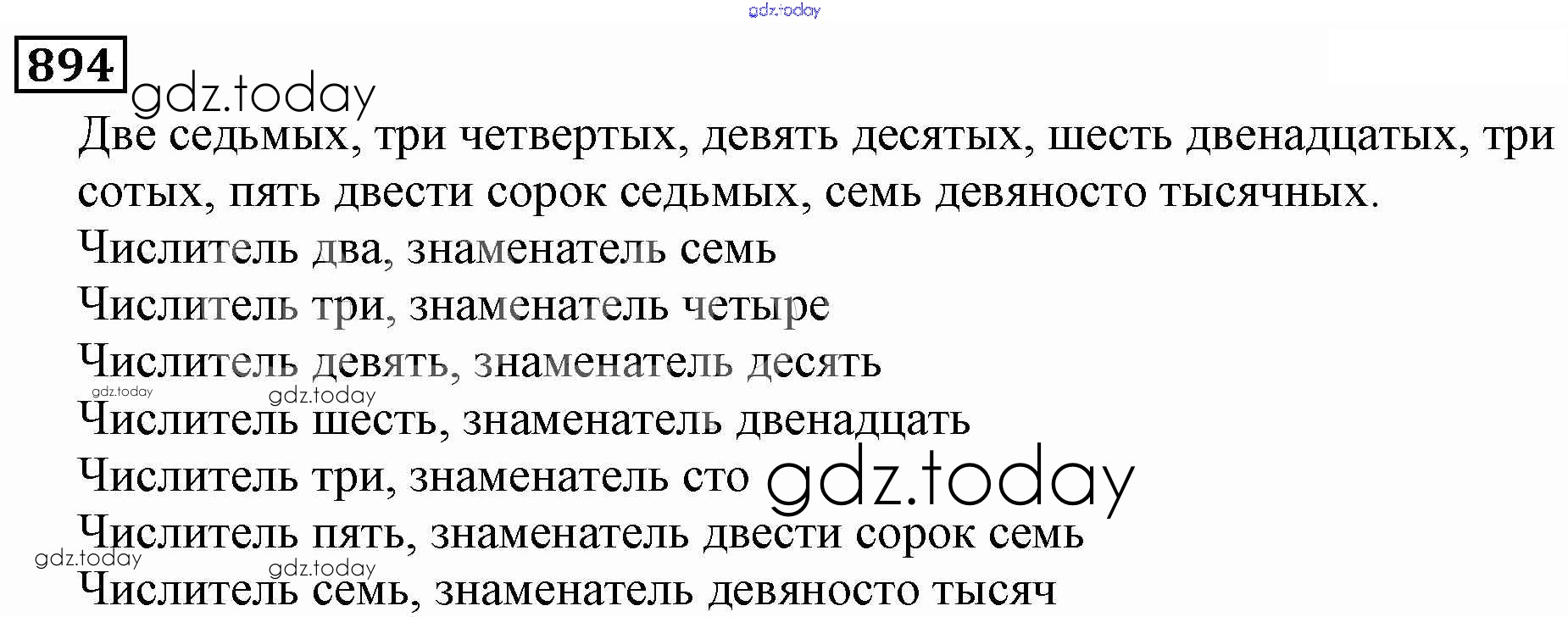 На страницах сайта gdz.today вы найдете учебный и вспомогательный материал, направленный на улучшения знаний школьной программы. ГДЗ - онлайн мир знаний Решение к главе2. Дробные числа (упражнения с 850 по 1849) 894 Учебнику по Математике для 5 класса Виленкин, Жохов Мнемозина 2013