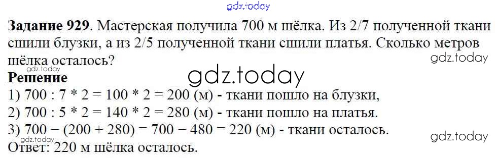 На страницах сайта gdz.today вы найдете учебный и вспомогательный материал, направленный на улучшения знаний школьной программы. ГДЗ - онлайн мир знаний Решение к главе2. Дробные числа (упражнения с 850 по 1849) 929 Учебнику по Математике для 5 класса Виленкин, Жохов Мнемозина 2013