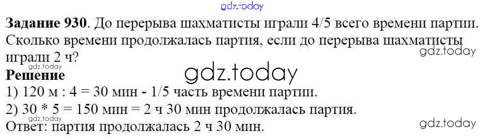 Ответы к Решение к главе2. Дробные числа (упражнения с 850 по 1849) 930 Учебнику по Математике для 5 класса Виленкин, Жохов Мнемозина 2013