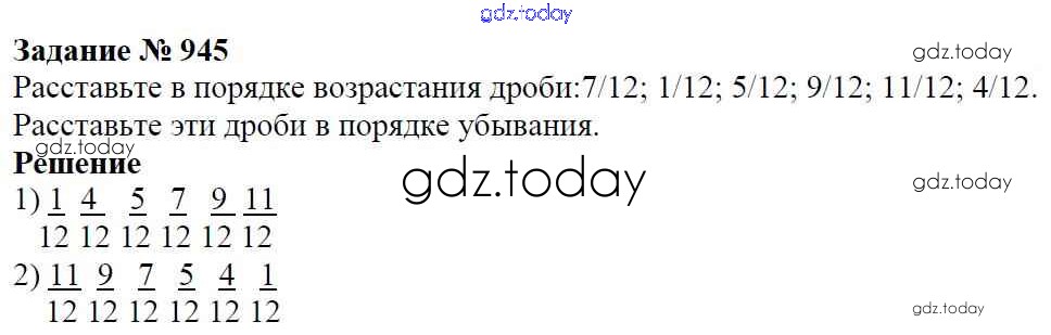 На страницах сайта gdz.today вы найдете учебный и вспомогательный материал, направленный на улучшения знаний школьной программы. ГДЗ - онлайн мир знаний Решение к главе2. Дробные числа (упражнения с 850 по 1849) 945 Учебнику по Математике для 5 класса Виленкин, Жохов Мнемозина 2013