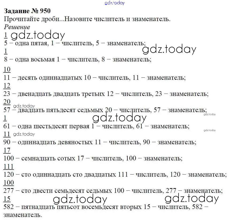 На страницах сайта gdz.today вы найдете учебный и вспомогательный материал, направленный на улучшения знаний школьной программы. ГДЗ - онлайн мир знаний Решение к главе2. Дробные числа (упражнения с 850 по 1849) 950 Учебнику по Математике для 5 класса Виленкин, Жохов Мнемозина 2013