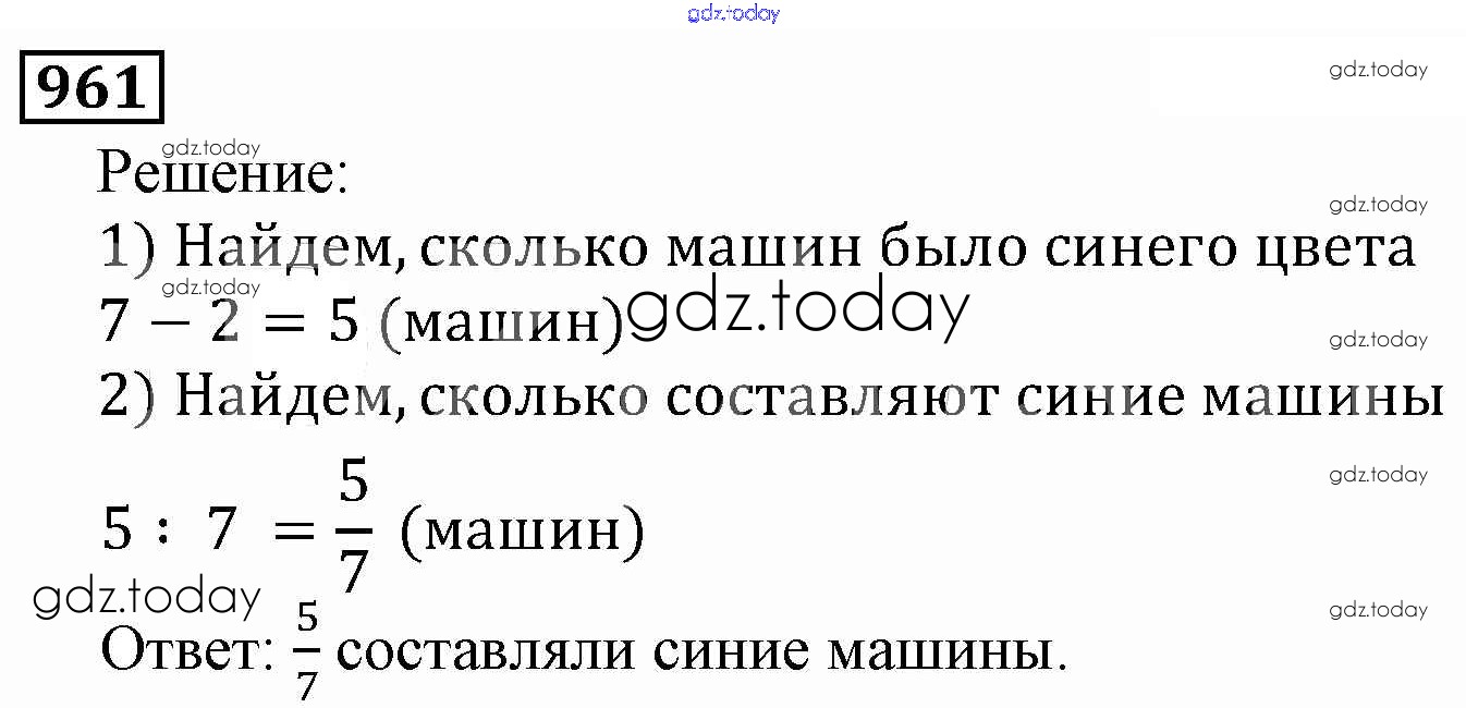 На страницах сайта gdz.today вы найдете учебный и вспомогательный материал, направленный на улучшения знаний школьной программы. ГДЗ - онлайн мир знаний Решение к главе2. Дробные числа (упражнения с 850 по 1849) 961 Учебнику по Математике для 5 класса Виленкин, Жохов Мнемозина 2013