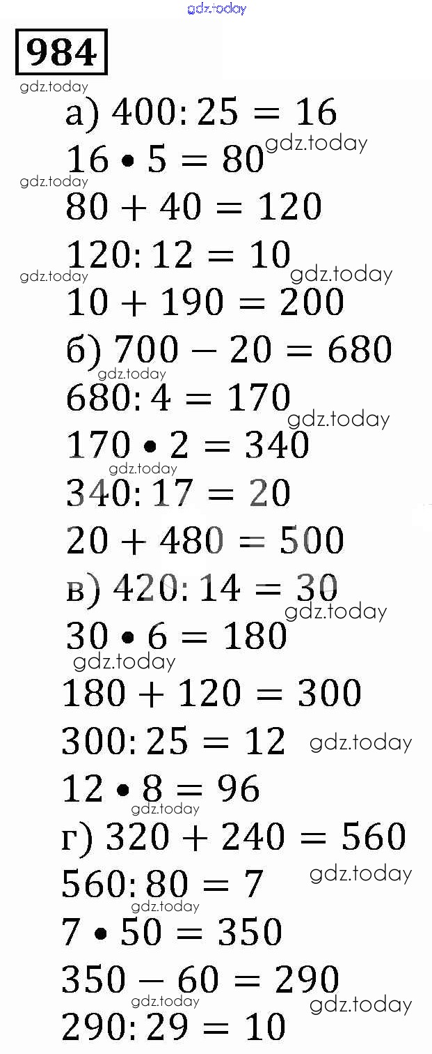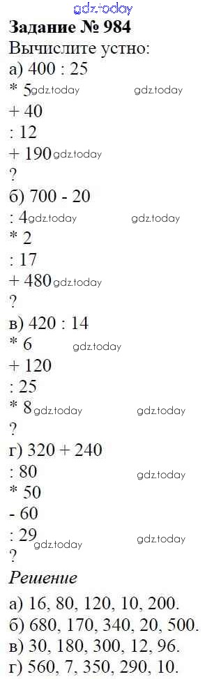 На страницах сайта gdz.today вы найдете учебный и вспомогательный материал, направленный на улучшения знаний школьной программы. ГДЗ - онлайн мир знаний Решение к главе2. Дробные числа (упражнения с 850 по 1849) 984 Учебнику по Математике для 5 класса Виленкин, Жохов Мнемозина 2013