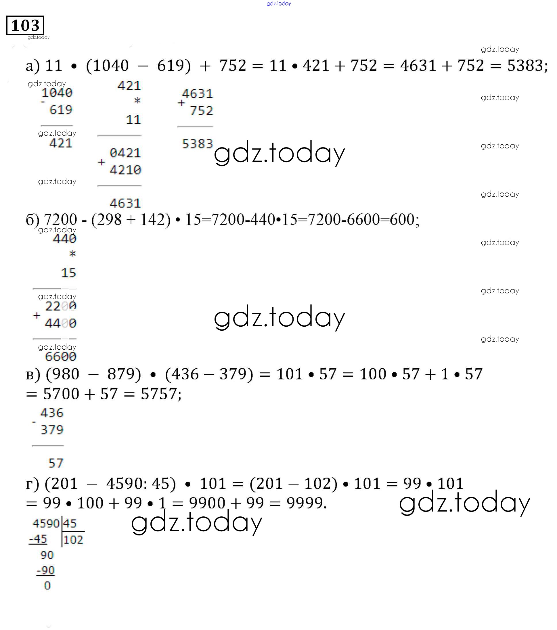 На страницах сайта gdz.today вы найдете учебный и вспомогательный материал, направленный на улучшения знаний школьной программы. ГДЗ - онлайн мир знаний Решение к упражнениям 103 Задачнику по Математике для 5 класса Бунимович Просвещение Сферы 2015