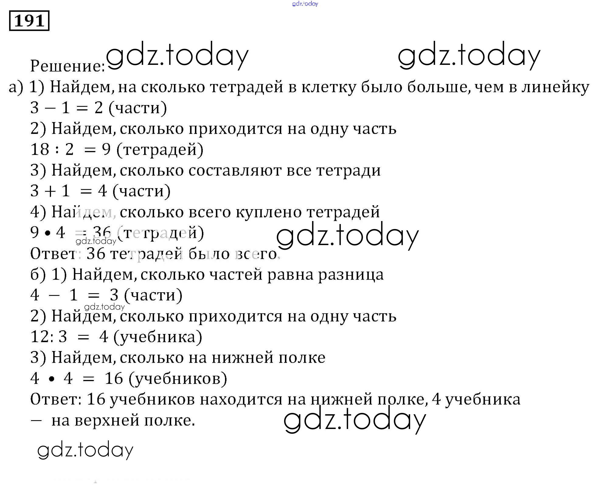 На страницах сайта gdz.today вы найдете учебный и вспомогательный материал, направленный на улучшения знаний школьной программы. ГДЗ - онлайн мир знаний Решение к упражнениям 191 Задачнику по Математике для 5 класса Бунимович Просвещение Сферы 2015