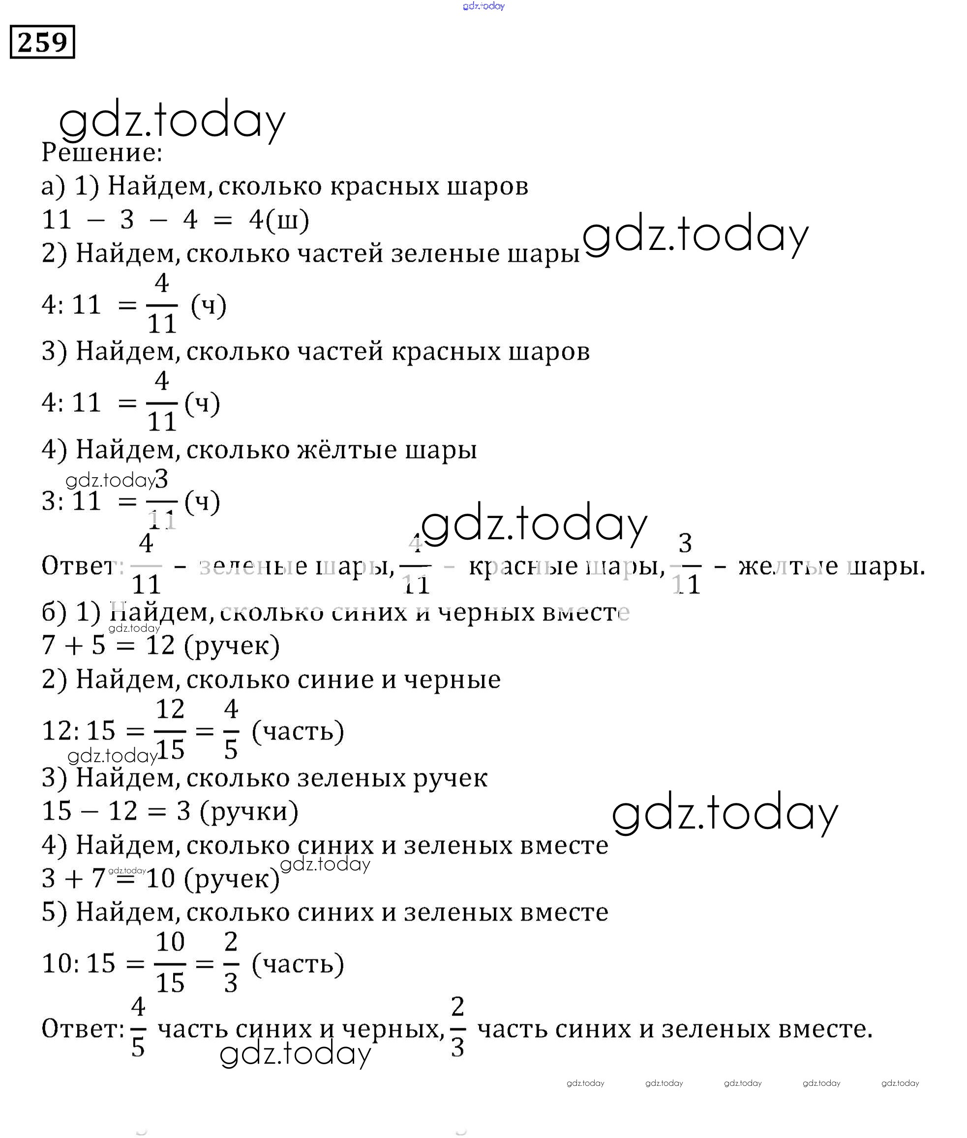 На страницах сайта gdz.today вы найдете учебный и вспомогательный материал, направленный на улучшения знаний школьной программы. ГДЗ - онлайн мир знаний Решение к упражнениям 259 Задачнику по Математике для 5 класса Бунимович Просвещение Сферы 2015