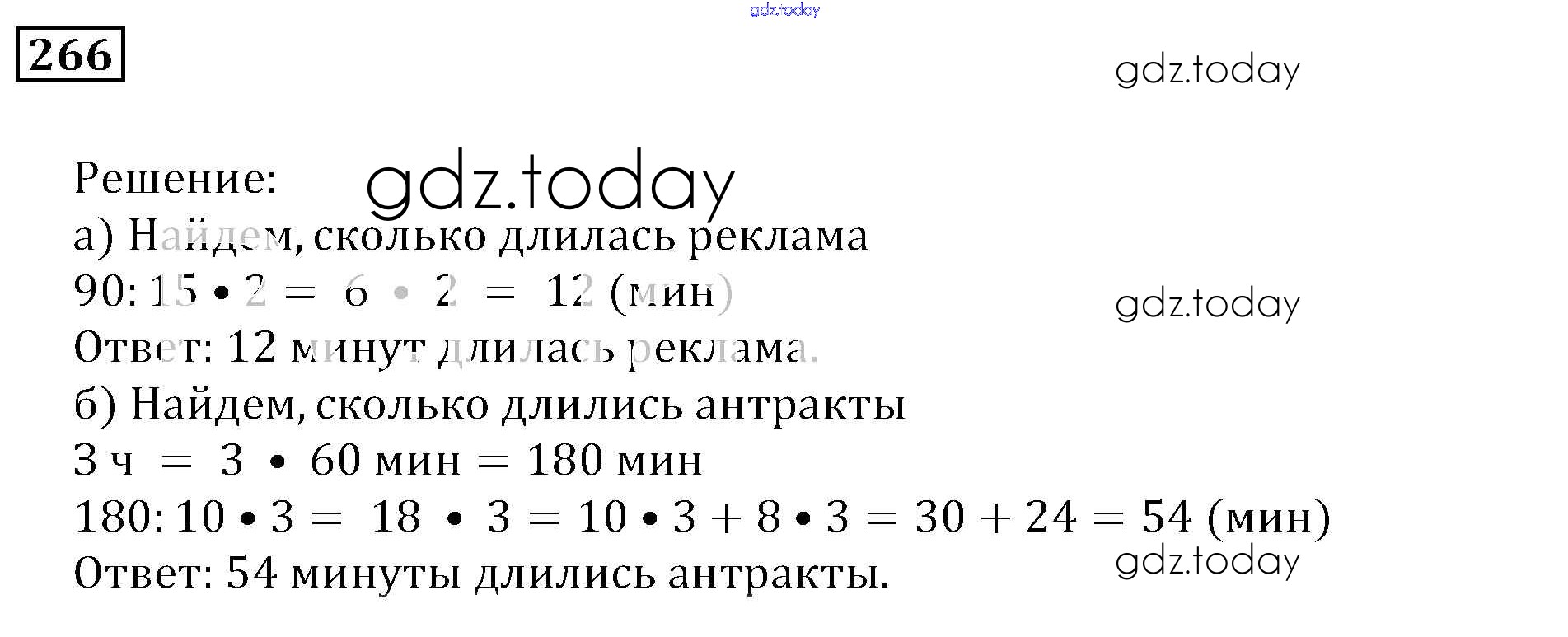 На страницах сайта gdz.today вы найдете учебный и вспомогательный материал, направленный на улучшения знаний школьной программы. ГДЗ - онлайн мир знаний Решение к упражнениям 266 Задачнику по Математике для 5 класса Бунимович Просвещение Сферы 2015
