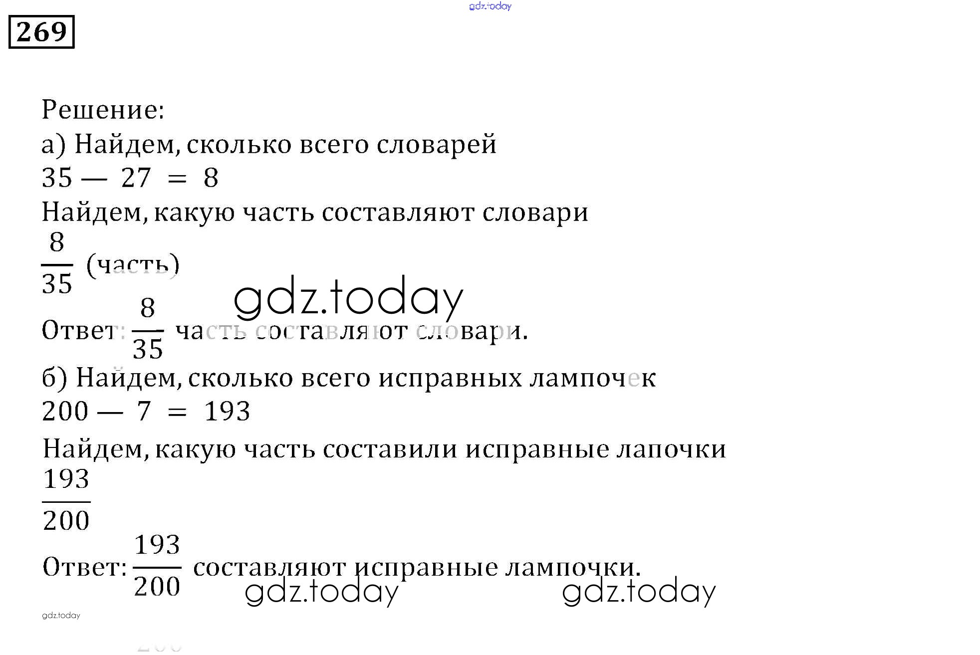 На страницах сайта gdz.today вы найдете учебный и вспомогательный материал, направленный на улучшения знаний школьной программы. ГДЗ - онлайн мир знаний Решение к упражнениям 269 Задачнику по Математике для 5 класса Бунимович Просвещение Сферы 2015