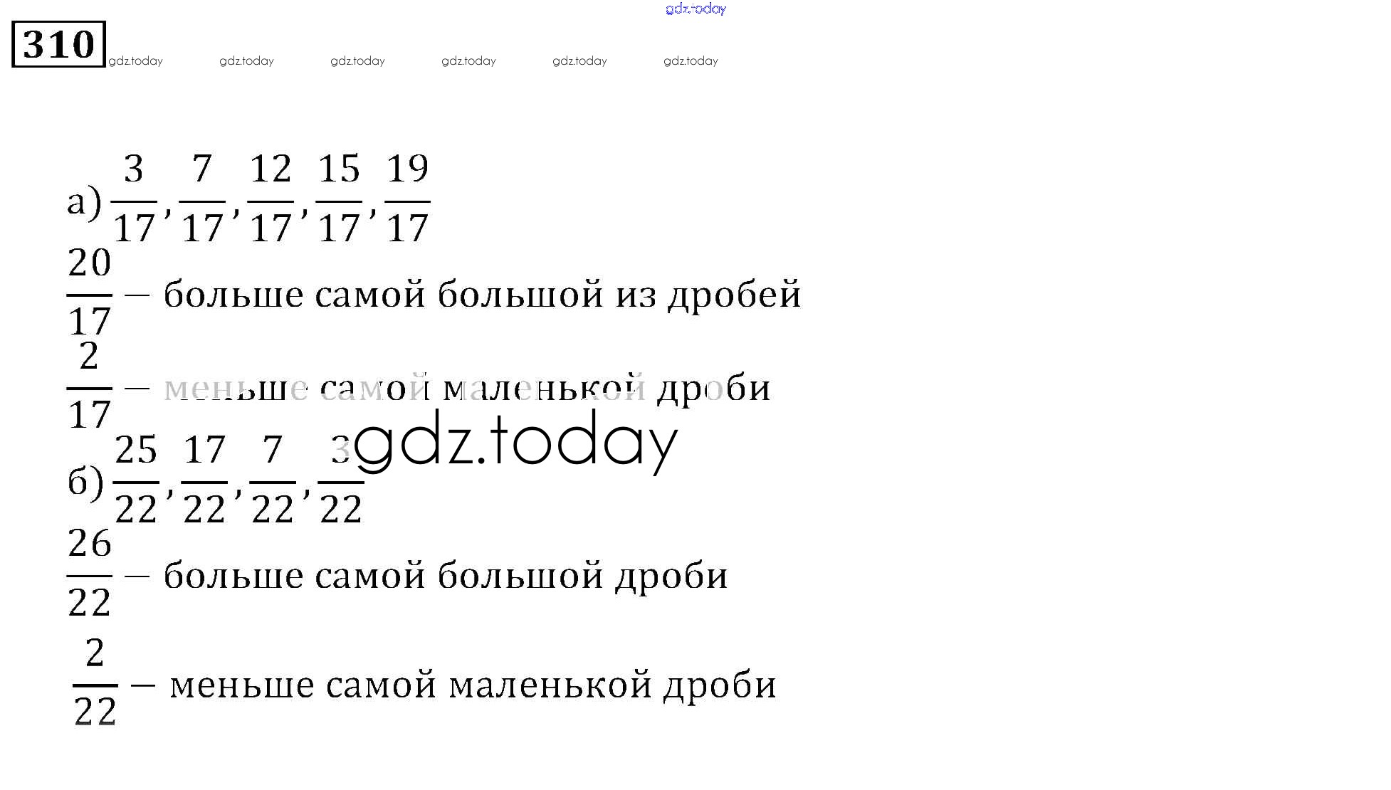 На страницах сайта gdz.today вы найдете учебный и вспомогательный материал, направленный на улучшения знаний школьной программы. ГДЗ - онлайн мир знаний Решение к упражнениям 310 Задачнику по Математике для 5 класса Бунимович Просвещение Сферы 2015