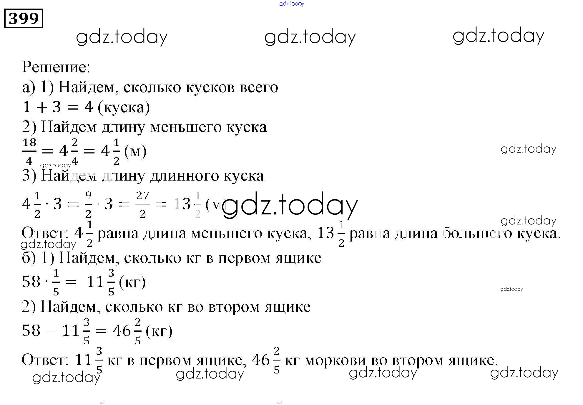 На страницах сайта gdz.today вы найдете учебный и вспомогательный материал, направленный на улучшения знаний школьной программы. ГДЗ - онлайн мир знаний Решение к упражнениям 399 Задачнику по Математике для 5 класса Бунимович Просвещение Сферы 2015