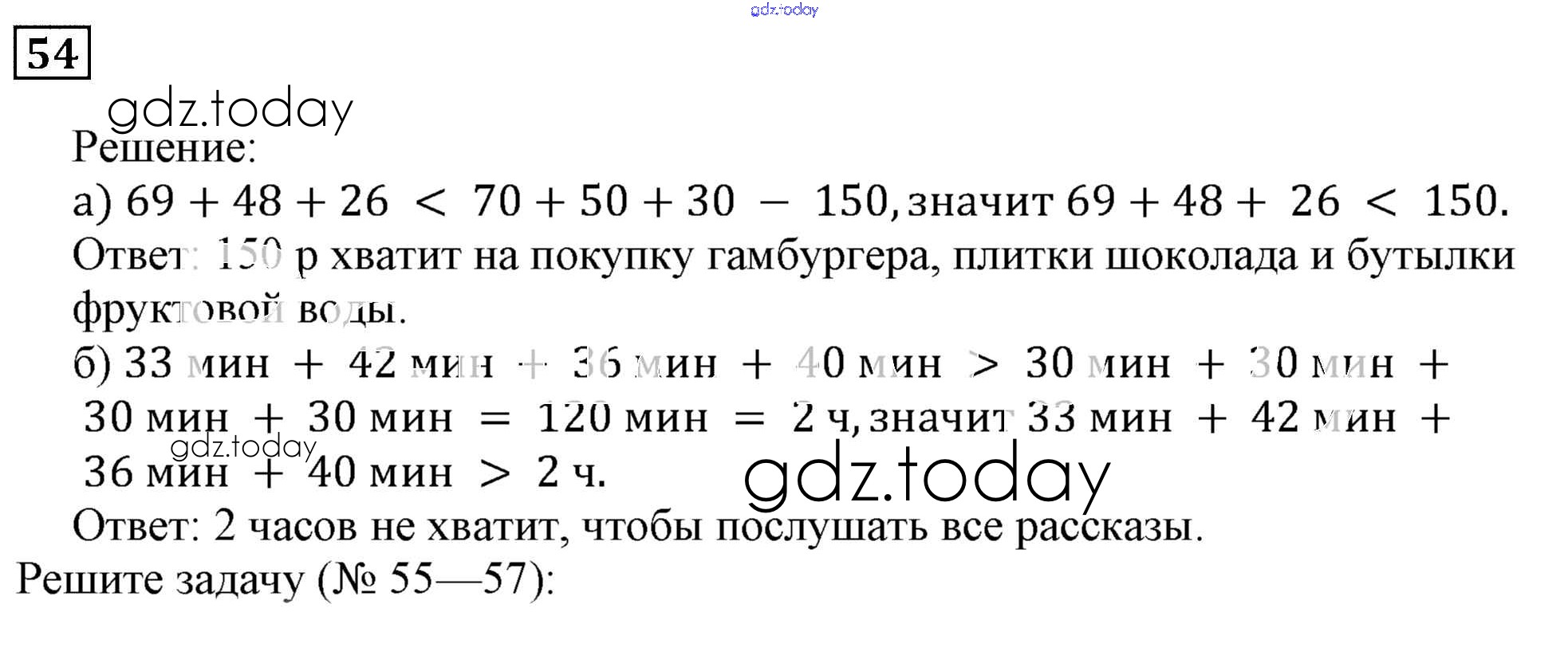 Ответы к Решение к упражнениям 54 Задачнику по Математике для 5 класса Бунимович Просвещение Сферы 2015